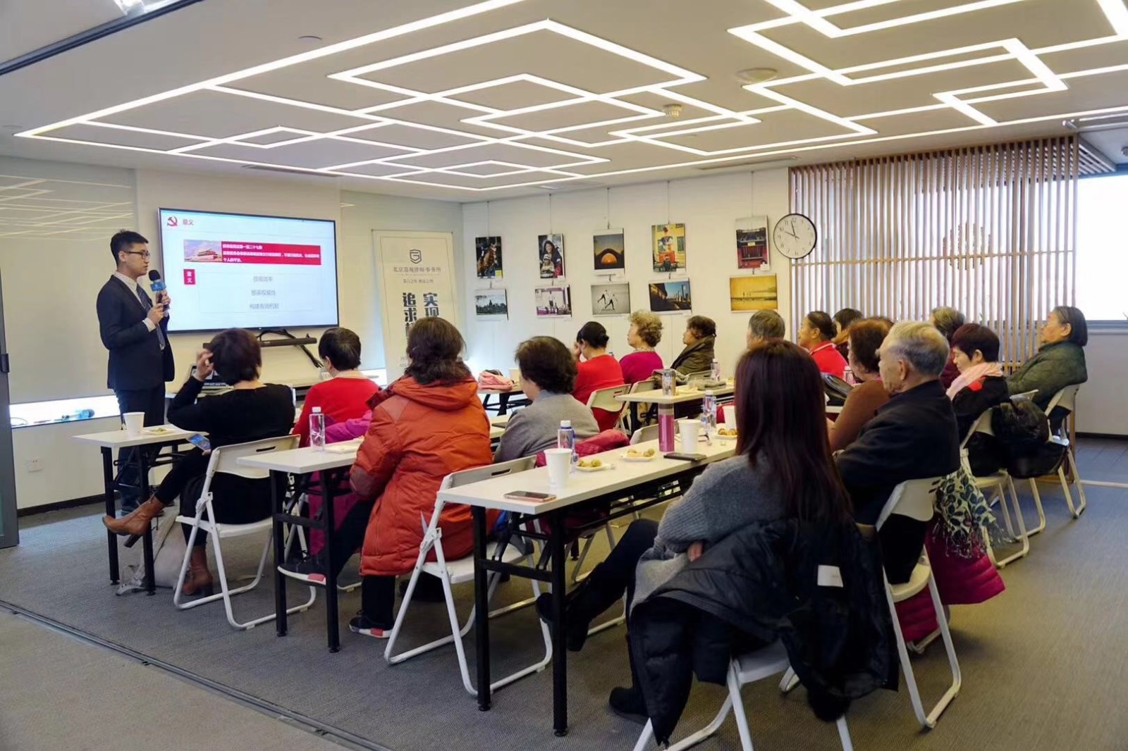 在活动分会场--北京嘉观律师事务所,来自万寿路街道万甲十五号社区的人大代表和群众代表30多人,在律师的带领下仔细参观了嘉观律师事务所,参观人员普遍对“嘉观影廊”印象深刻,认为由首都各位律师投稿组成的嘉观影廊很好地展现了律师的日常工作、兴趣爱好,大家从影廊中领会了律师行业的风采。随后,嘉观所的律师还为群众进行了一场深入浅出的宪法知识讲解,还对群众提出的法律问题一一进行了解答,充分展示了海淀区专业律所的风采。
