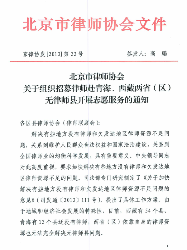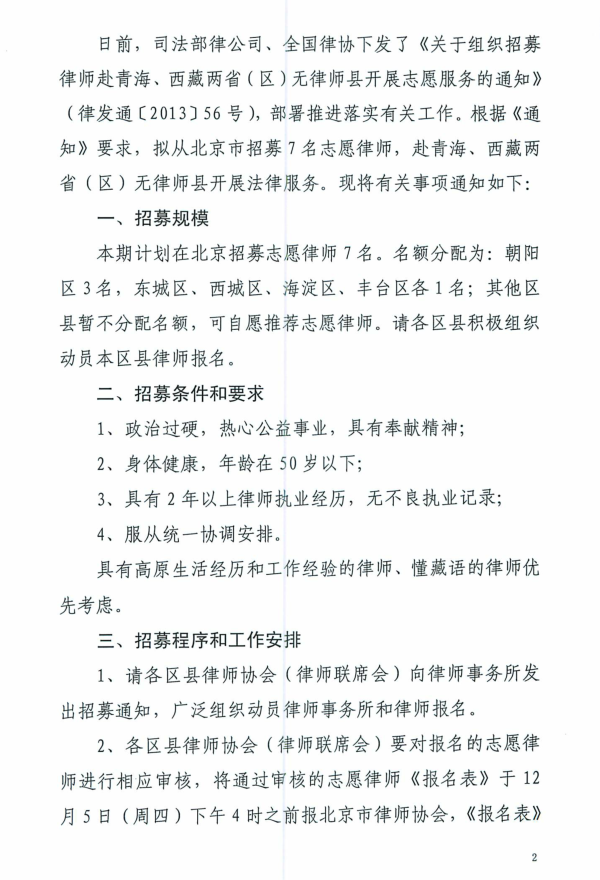 海淀律协转发市律协关于组织招募律师赴青海、西藏两省无律师县开展志愿服务的通知