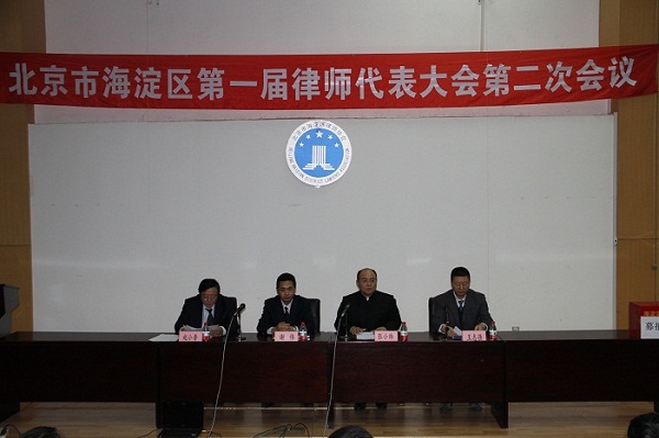 2012年3月2日上午9点30分,第一届律师代表大会第二次会议于海淀区政府第二办公区中222会议室召开。北京市海淀区司法局副局长谢伟、北京市海淀区律师协会会长张小炜、北京市律师协会监事长、区党委委员赵小鲁、北京市海淀区律师协会监事长王志强,北京市海淀区律师协会副会长许涛、殷杰、朱振武、高警兵、毕文胜、张丽霞、董刚出席会议,海淀区七十名代表参加了会议。会议由张小炜会长主持。