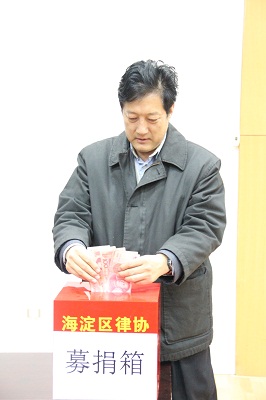 大会最后,进行全场募捐活动,到场代表都纷纷捐款,献出自己的爱心。全场共收到12100元捐款,其中海淀律协领导共捐款7800元。