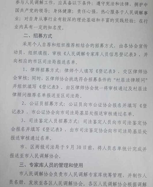 北京市司法局办公室关于开展全市人民调解专家库建设的通知
