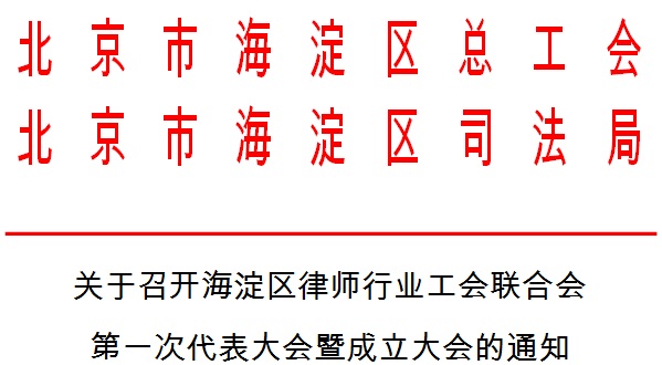 经区总工会、区司法局研究同意,海淀区律师行业工会联合会第一次代表大会暨工会联合会成立大会,定于2016年12月23日召开。现将具体事项通知如下: