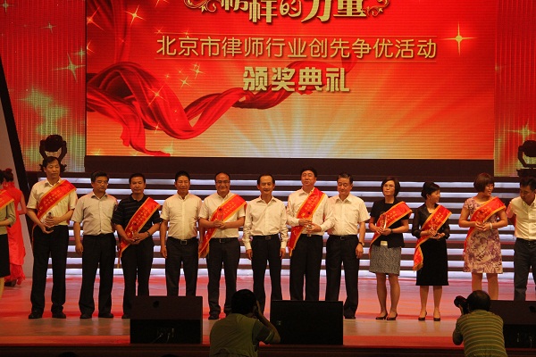 2012年6月27日下午3点整由北京市司法局和北京市律师协会共同举办的“北京市律师行业创先争优活动颁奖典礼”在京西宾馆举行。大会总结了三年来创先争优的成绩和经验,表彰了在活动中表现优秀的楷模。