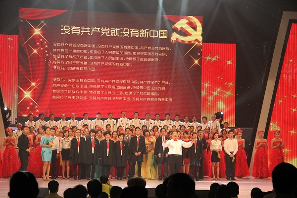 图为:全体大合唱《没有共产党就没有新中国》