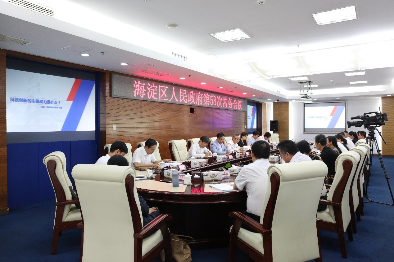 2018年6月4日上午9时,海淀区人民政府第58次常务会议在区政府2楼会议室召开。会议由海淀区委副书记、区长戴彬彬主持。按照惯例,本次常委会邀请海淀区政协常委、海淀区律师协会副会长、北京市帅和律师事务所主任沈腾博士以“科技创新的市场动力是什么?”为主题,进行知识产权发展与科技创新的授课。海淀区全区党委机关负责人、各行政委办局负责人、各街道负责人,以及海淀区人大、海淀区政协听取了授课。多少年来,海淀区作为全国科技创新示范区和全国文化大区,经常邀请国内高水平的专家来授课。邀请律师授课尚为首次。
