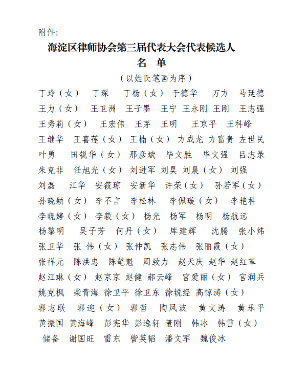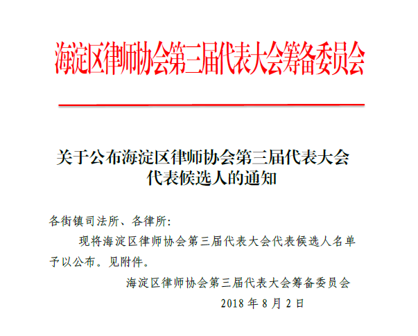 关于公布海淀区律师协会第三届代表大会代表候选人的通知