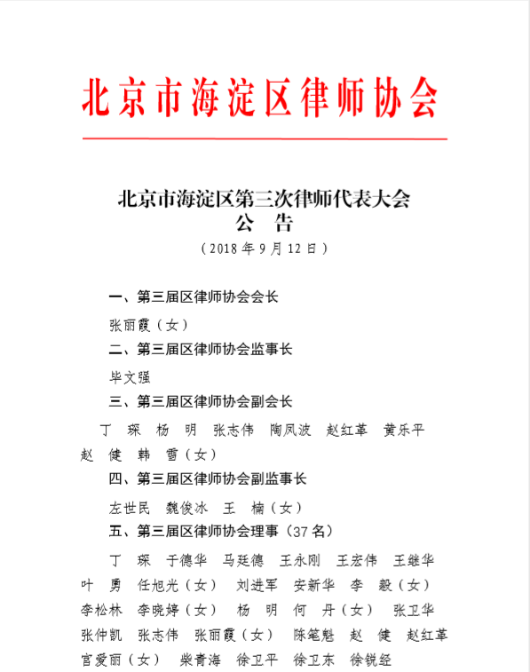 北京市海淀区第三次律师代表大会公告