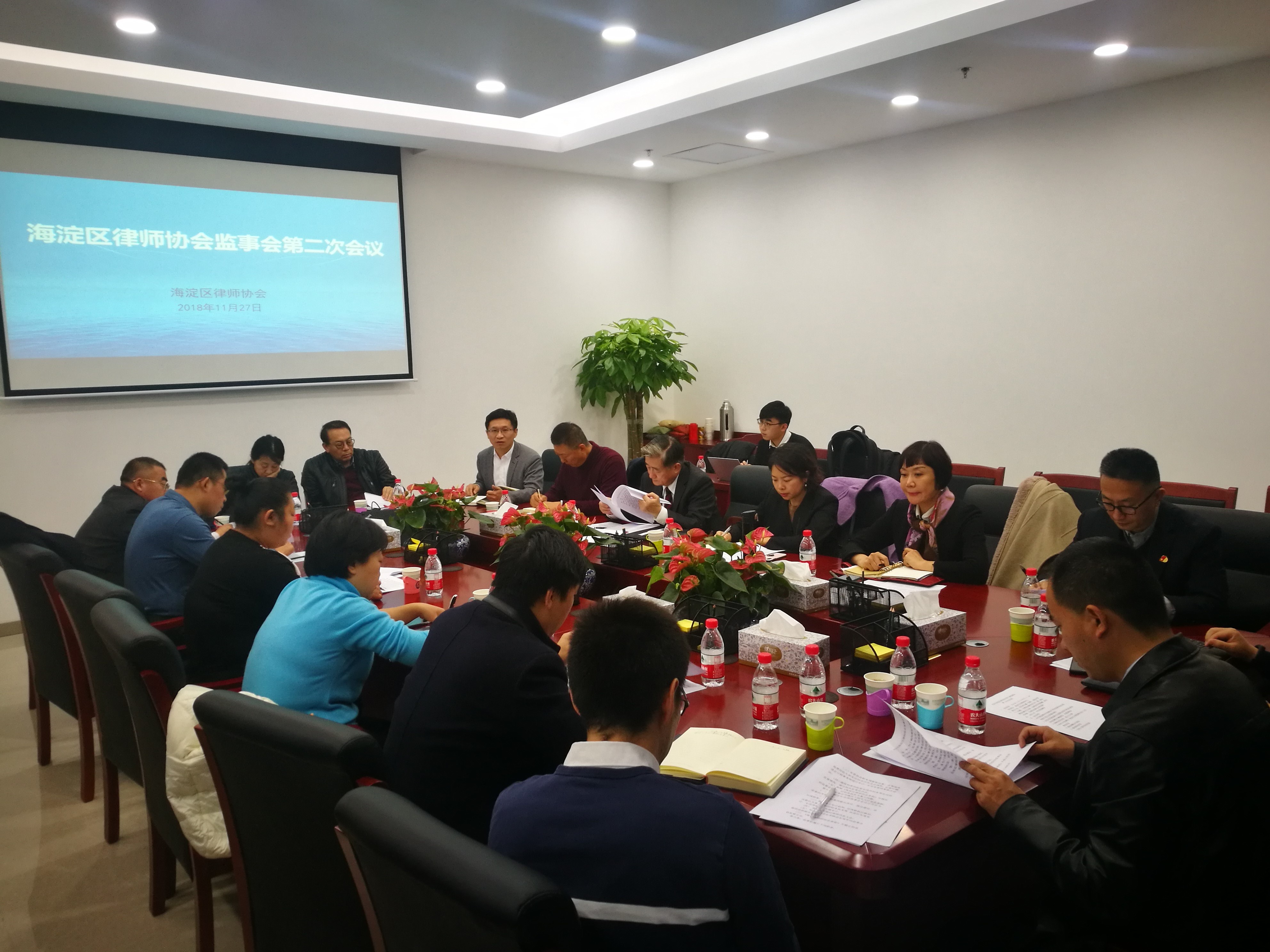 2018年11月27日海淀区律协第三届监事会第二次会议在海淀区公共法律服务中心召开。海淀区司法局副局长罗飞莅临指导,市律协监事长张卫华、第二届区律协监事长王志强、区律协会长张丽霞、秘书长师锋应邀请出席,会议由监事长毕文强主持。