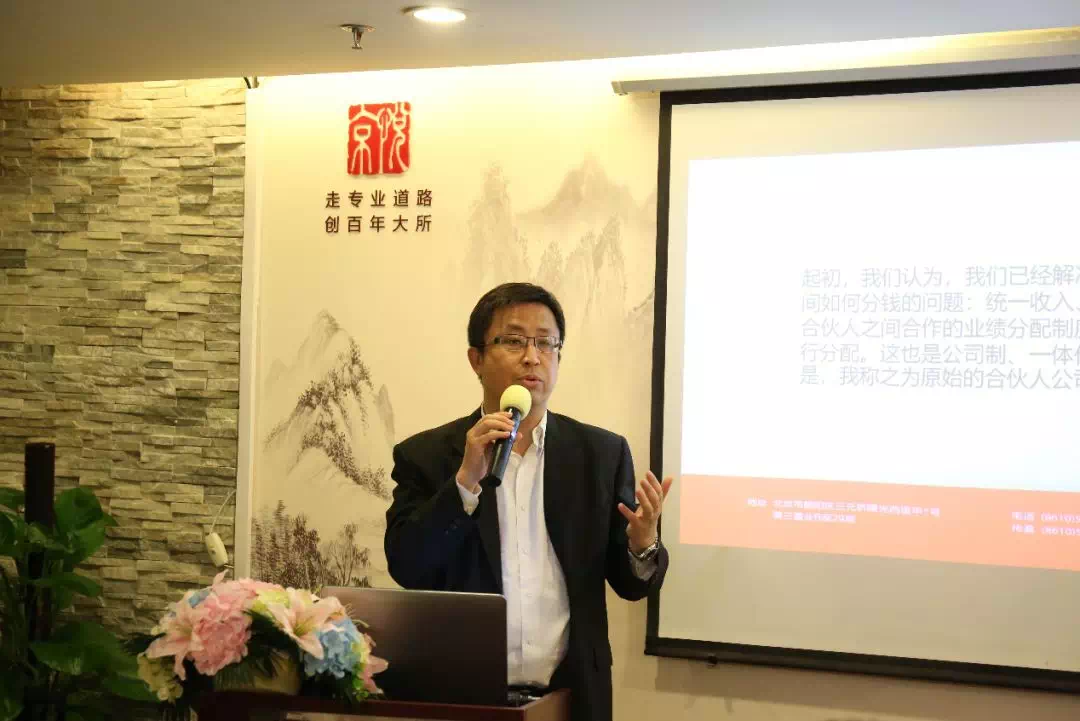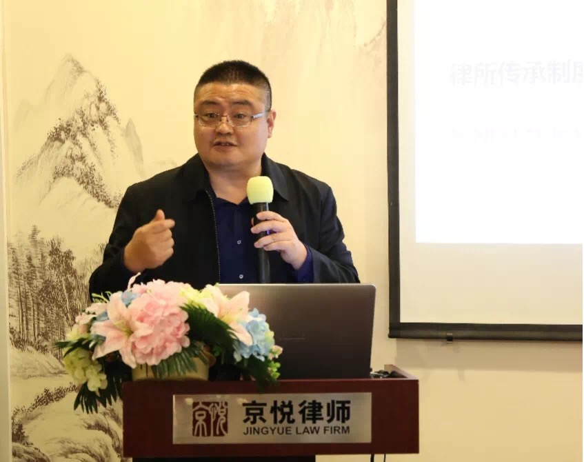 京悦律师事务所高级合伙人、管委会成员王少华律师做了《律所合伙和管理制度的创新》的主题演讲。