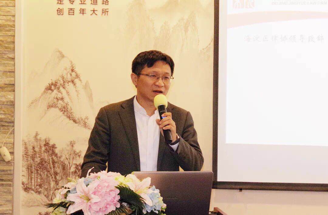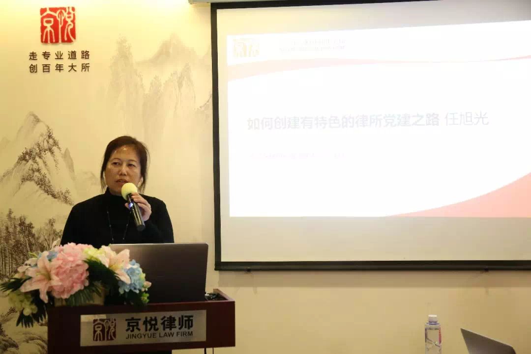 区律协行业党建委员会主任任旭光律师做了《如何创建有特色的律所党建之路》的主题演讲。