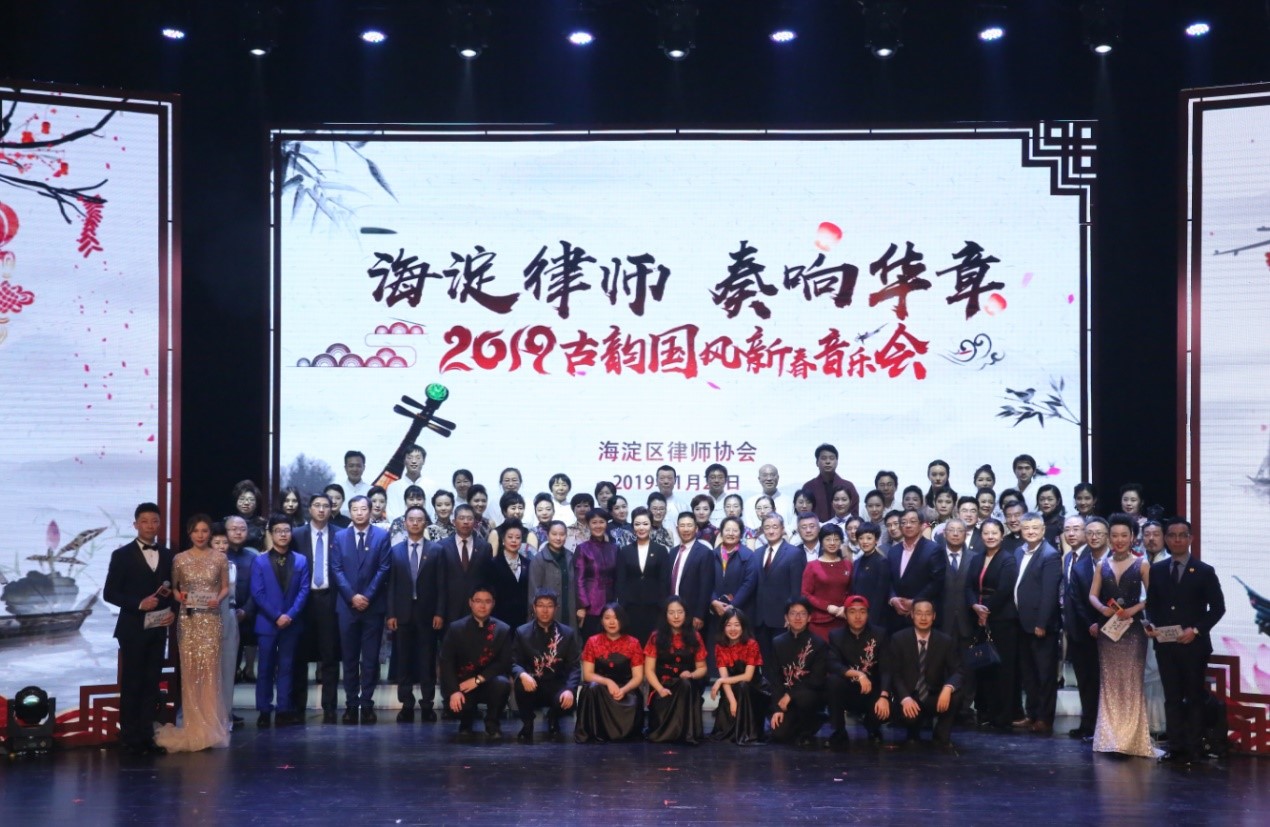 为弘扬海淀律师积极进取、昂扬向上的精神风貌,充分展示海淀律师的专业特质、文化品位和艺术修养,提升海淀律师在海淀执业的自豪感、荣誉感和幸福感,2019年1月23日,区律师协会在中间艺术区隆重举办“海淀律师·奏响华章” 2019年古韵国风新春音乐会。区司法局党组书记、局长周玉鑫,区司法局副局长刘玥、区妇联副主席梅艳东、海淀园管委会服务体系建设处科长张静、市律协监事长张卫华、市律协副会长庞正中、赵曾海、张峥、刘卫东、市律协副秘书长刘军、市律协会员事务委员会主任孙晓洋、朝阳区律协副会长孙为等领导和嘉宾莅临,与四百余名海淀律师以及长期关心海淀律师事业的各界朋友欢聚一堂,共同迎接新年的到来。