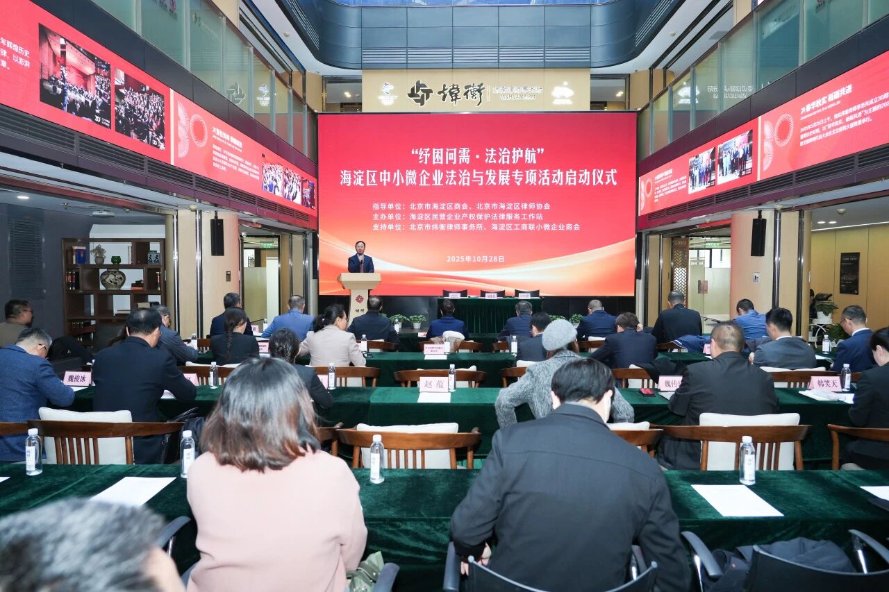 10月28日,海淀区中小微企业法治与发展专项活动在北京市炜衡律师事务所正式启动,活动主题为“纾困问需·法治护航”。此次活动不仅是海淀区深化落实民营经济促进法, “优化民营企业发展环境,依法保护民营企业产权和企业家权益”工作部署的关键举措,更是以法治力量赋能新质生产力、构筑国际一流营商环境的一次生动实践,标志着海淀区在服务民营经济高质量发展上迈入了系统化、专业化、精准化的新阶段。活动在海淀区商会、海……
